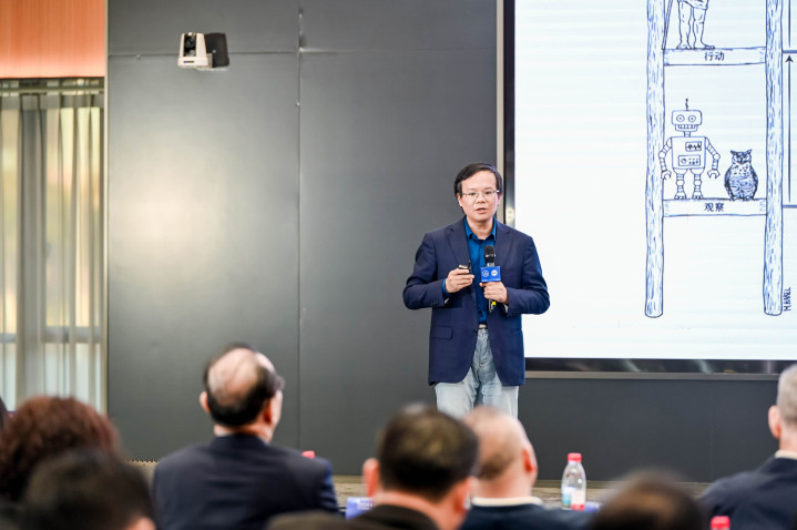 在前沿学术分享环节,北京大学深圳研究生院副院长、科学智能学院执行院长、鹏城实验室智能计算机部副主任、云脑研究所所长田永鸿教授,以《基于世界模型的鲁棒具身智能系统》为题发表主旨演讲,介绍其团队在具身智能与世界模型领域的前沿探索。他重点分享了与云蝶科技共建联合实验室的最新研究成果——围绕具身智能训练过程中物理规律嵌入、复杂指令遵从与模型效率提升等关键方向开展攻关,为复杂环境下的具身智能训练提供了新的路径。该演讲在活动中引发热烈反响,也印证了大湾区产学研协同创新的强大活力。